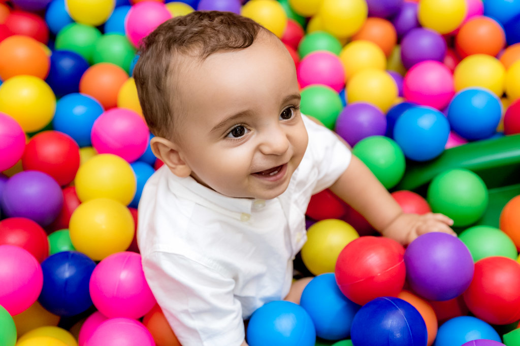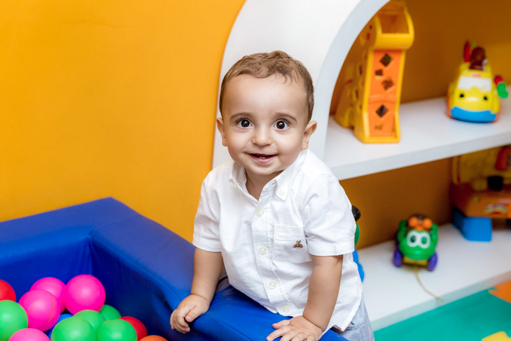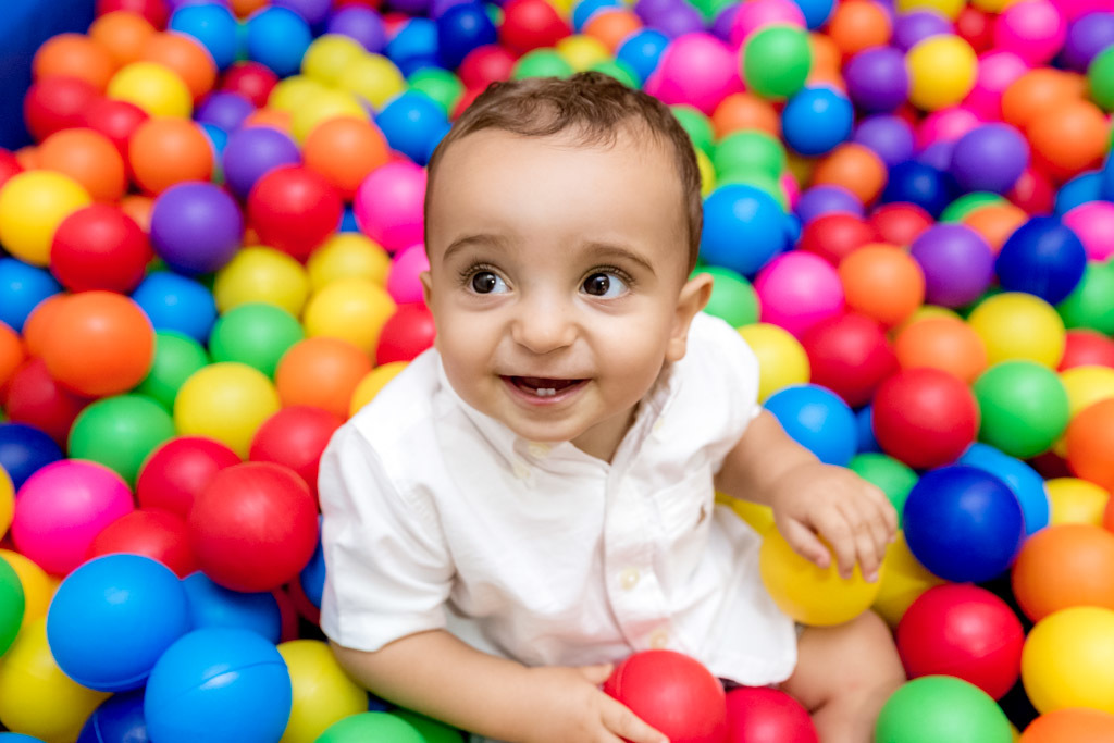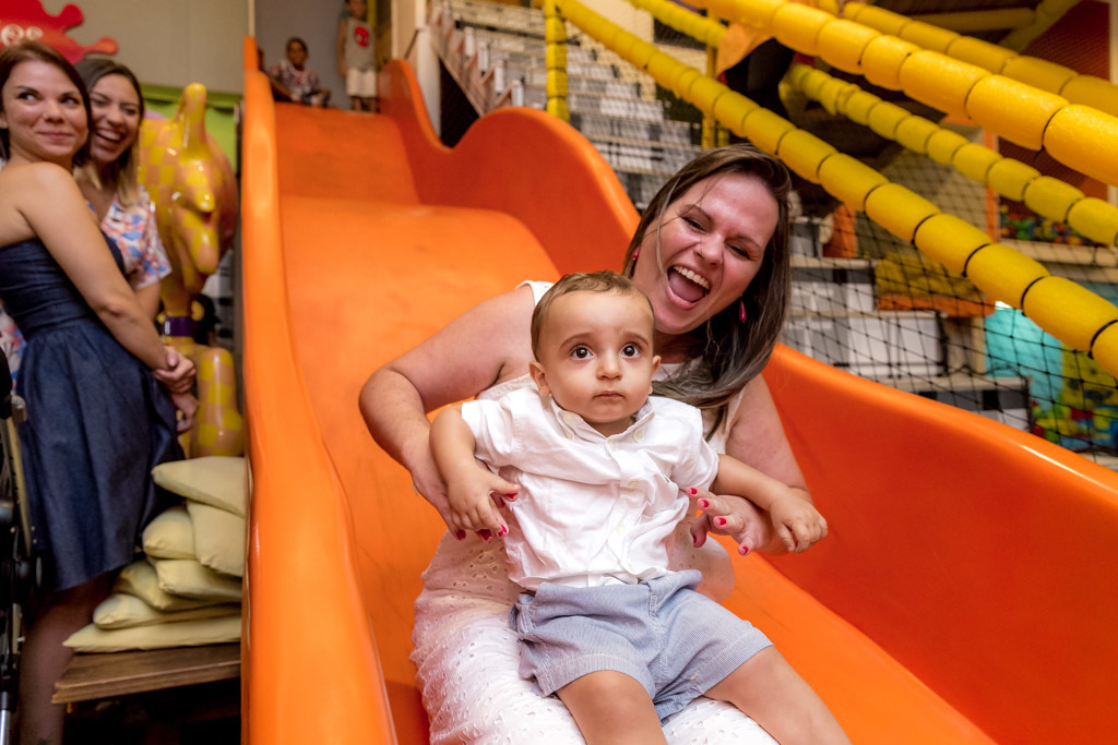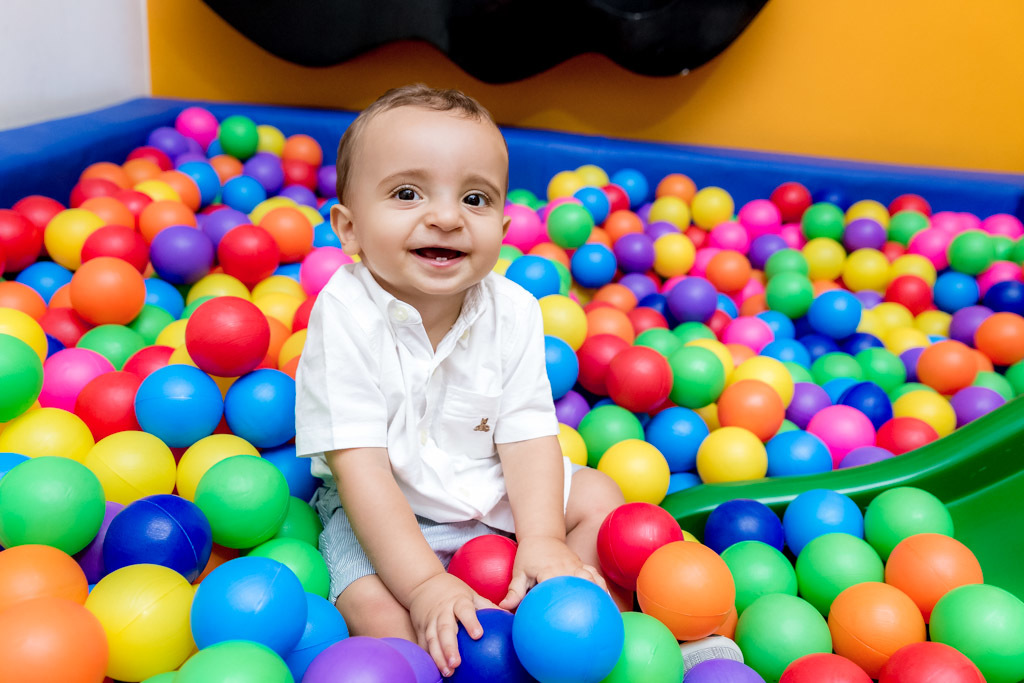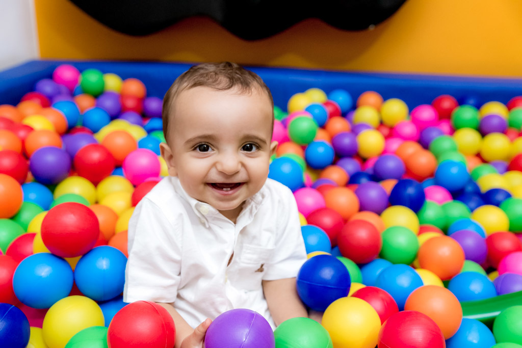 Nem parecia que ele só tinha um ano, aproveitou quase todos os brinquedos e se divertiu muito na piscina de bolinhas. Foi até complicado tirar ele de lá pra cantar o parabéns