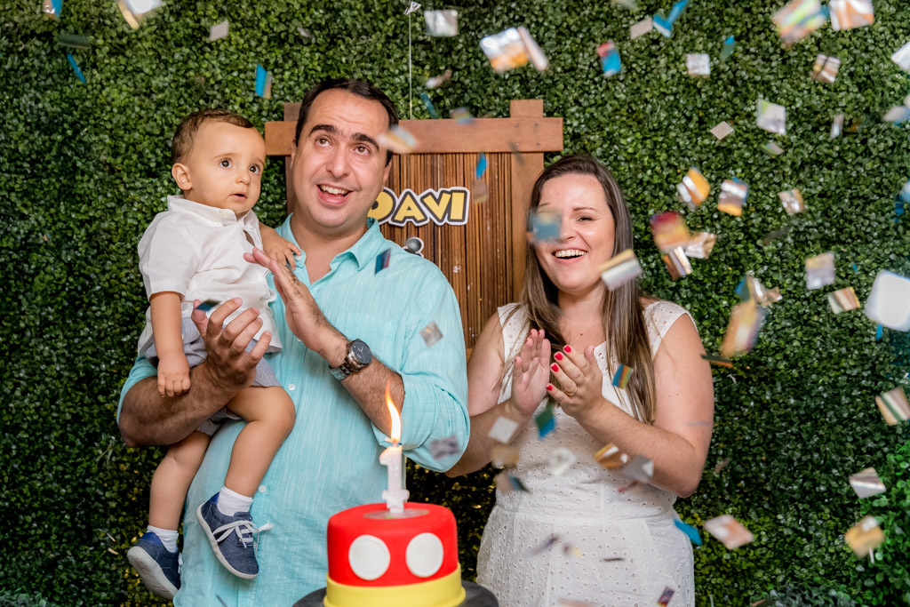 A Giselle Araujo e o Jorge Luiz chamaram toda turma do Mikey para comemorar o primeiro aninho do Davi, lá na Gato Xadrez Festas Infantis.